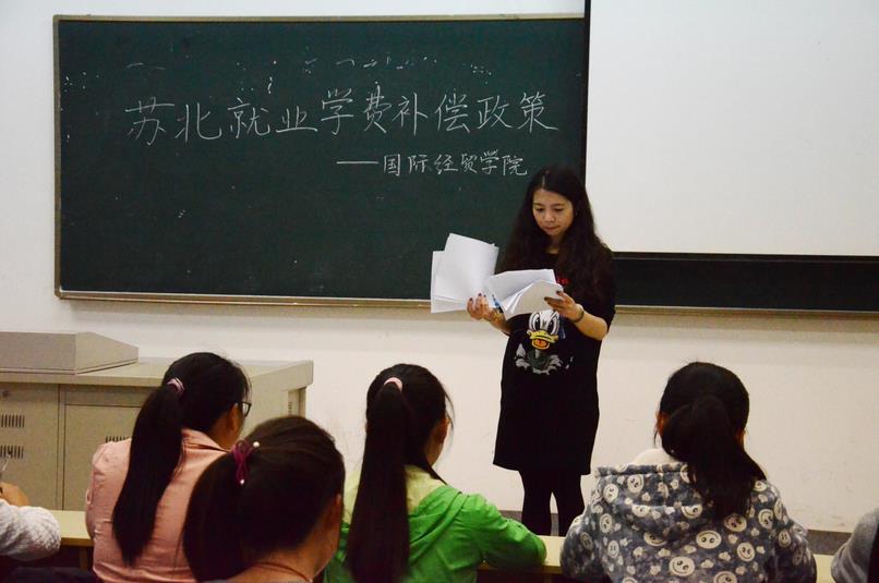 针对2011级经济困难学生,学院于2015年4月26日通过班会的形式向大家宣传苏北就业学费补偿政策,班会由11级辅导员顾高菲老师主持,2011级经济困难学生及部分学生参加了此次说明会。说明会围绕着团苏委联[2015]9号文件相关内容展开。 首先,由吕兴彬向参加的同学宣读了团苏委联[2015]9号《2015 年江苏大学生志愿服务苏北计划实施方案》的重要内容,对于招募流程、招募要求及标准、可以享受到的先关政策等做了详细说明。 之后,顾老师...