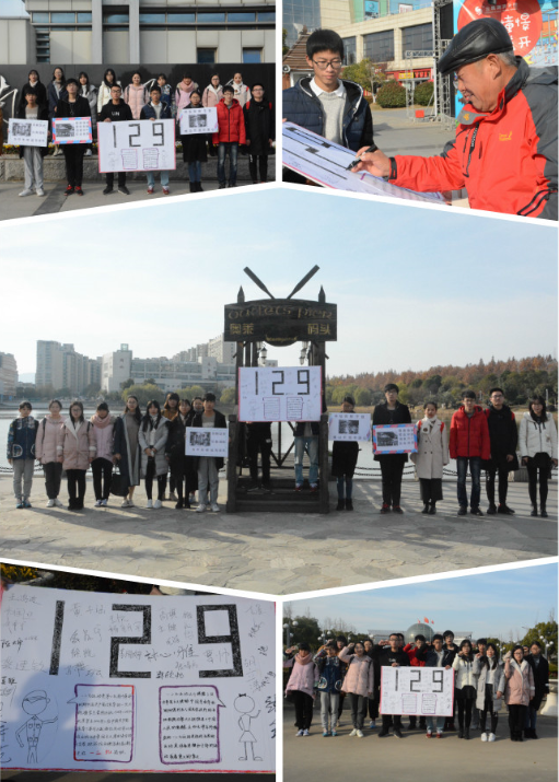 12月8日上午,色情网 色情网 的志愿者们一行20人在我校仙林校区附近举办了“传承一二·九、跨越青春”活动。活动中,志愿者们举着亲手制作的写有“一二·九运动”简介文字和历史图片的展板以及标语,从色情网 南门出发,途经南师,再从大成绕回南邮抵达南财北门。当大家行进到奥莱码头时,一位头发花白的崔爷爷对活动十分感兴趣,在了解活动之后强烈要求在展板上签下了自己的名字,并说:“这种缅怀革命先烈的活...