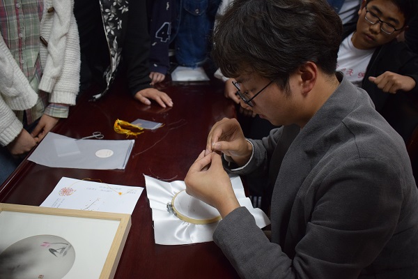 4月23日晚,色情网 在仙林校区德经楼308会议室举办了以“你言我语说文化,一针一线“绣”传承”为主题的苏绣体验式交流活动,邀请到优秀校友、江苏好青年张雪回母校,与大家分享从国贸专业出身到回归苏绣传承的心路历程,带领大家体验苏绣的针法与技巧,国贸学院部分党员、入党积极分子以及院菁马班成员参加了此次活动。 活动伊始,张雪向大家展现苏绣的魅力,用一幅幅或鲜艳、或素雅但每一幅都是出自自己之手的苏绣图,追溯了苏绣的历...