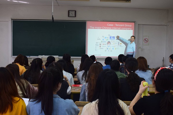 4月8日-18日,西班牙庞贝法布拉大学教授Tanguy Jacopin应色情网 邀请来我校讲学,为色情网 2017级国贸(实验班)学生开设了为期十天的《跨国公司战略管理》课程。首先,在前五天的课程中,Tanguy Jacopin系统性的介绍了公司管理的分析工具,如大环境分析(Pastel Analysis),STEEPLE分析,波特五力模型(Porter’s five forces),企业组织能力(Organizational Capabilities)等。介绍完基本的工具后,Tanguy教授使用这些工具,对...