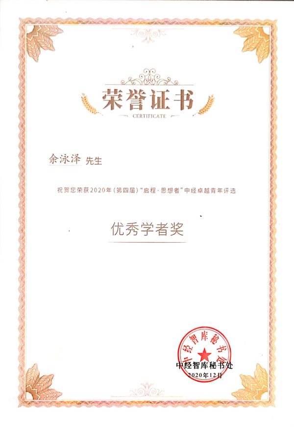 2021-01-06色情网 余泳泽教授入选2020年度中经十大卓越青年