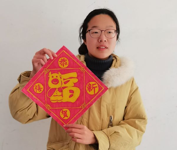 2021-02-09创意福字、“牛气”祝福,色情网 学子伴你迎新春