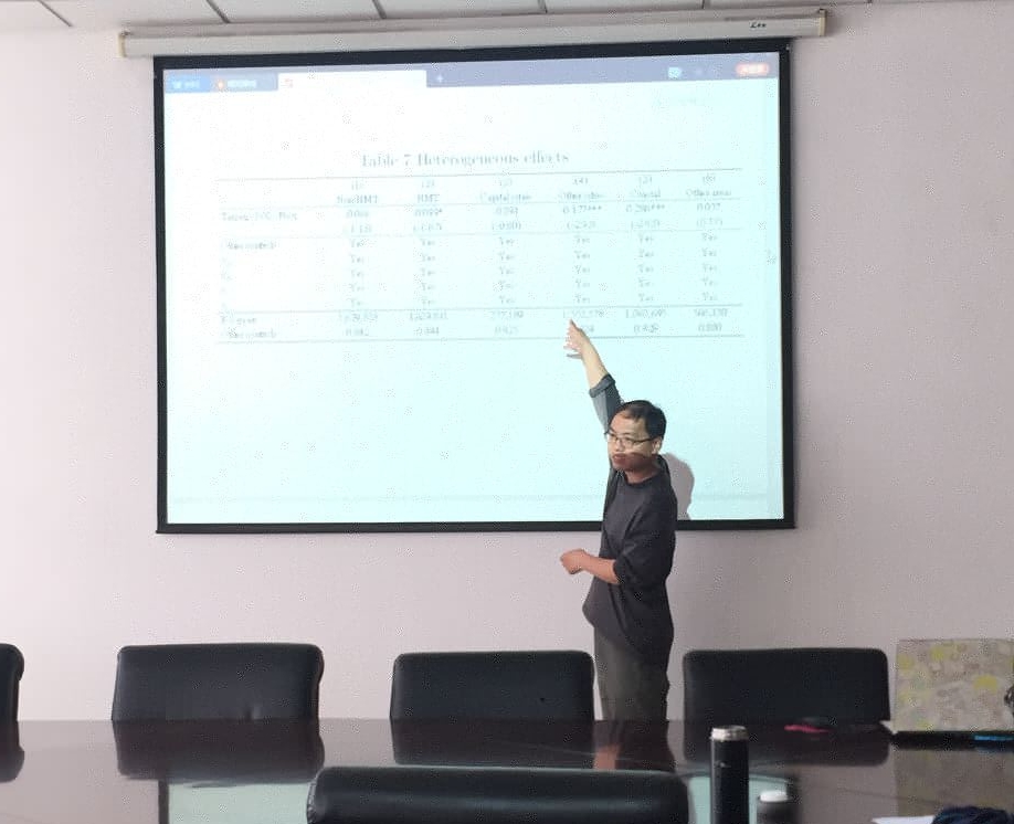 师生展开了热烈的讨论,并就国际贸易学最新的研究方向和在实证研究过程中如何构建工具变量做出了几点介绍。参与讲座的老师和学生均表示受益匪浅。