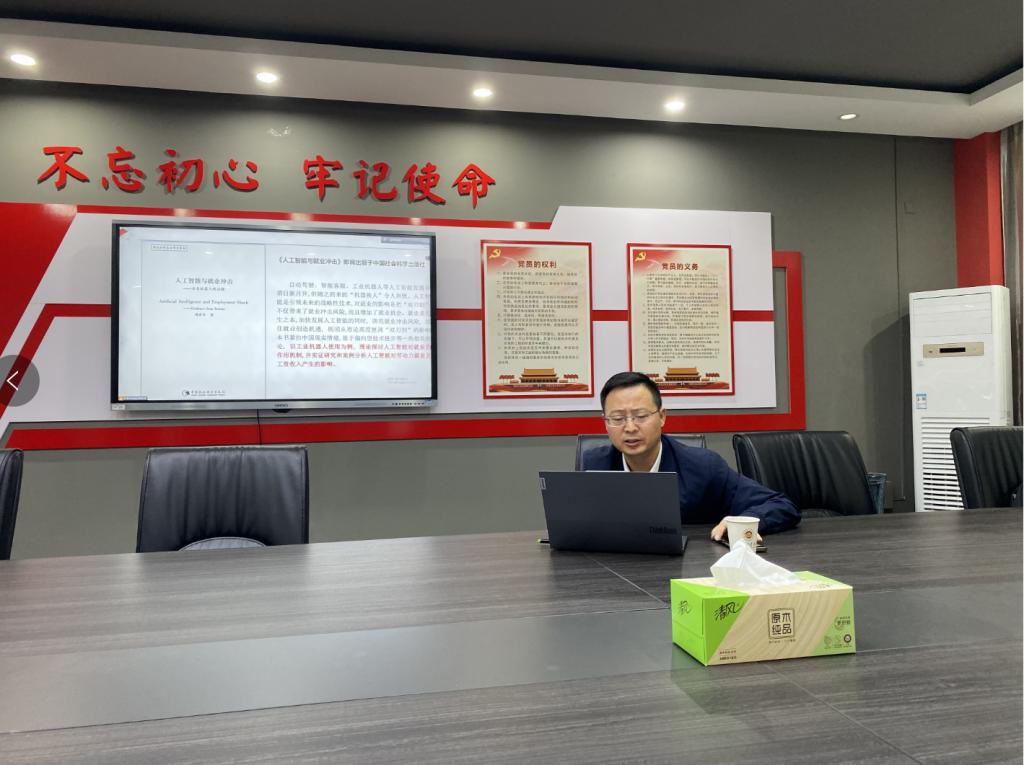 承办的产业科技创新与政策系列讲座第3期以现场方式进行,安徽工业大学商学院副院长周世军教授应邀作了主题为“人工智能与就业冲击”的专题讲座,本次讲座由贸易经济系杨向阳教授主持。