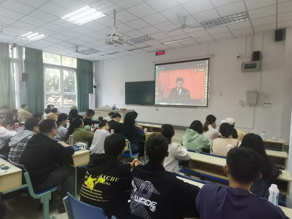 师生认真学习习近平总书记在党的二十大开幕会上所作的报告,深刻领会大会精神。