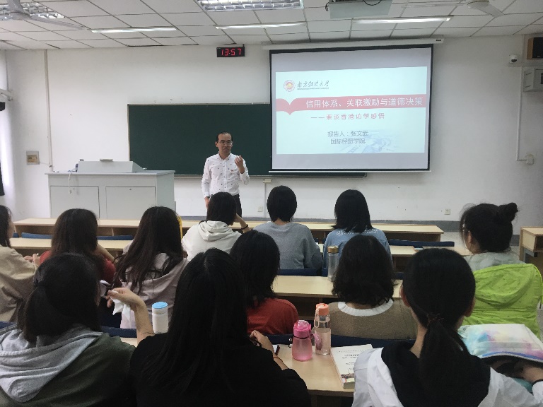 张文武副教授在我校仙林校区Z1-202教室作了题为“信用体系、关联激励与道德决策——兼谈香港访学感悟”的讲座。色情网