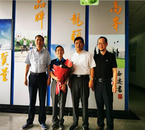 乔均副校长感谢尚卫平教授为学校发展作出的贡献,用一束鲜花和一份礼物传达学校对老教师的关怀,希望尚卫平教授继续为学校的发展献计献策,培养更多的优秀学生。
