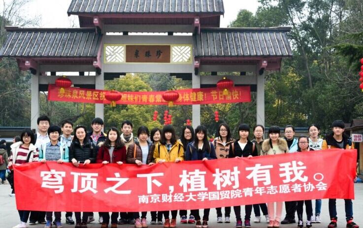 青年志愿者协会组织志愿者们来到浦口区珍珠泉旅游度假区。护林工人早已为大家准备好了小树苗,纤细碧绿的小树苗在春风中摇曳,仿佛是一个个向上升腾的绿色希望。志愿者们依次领到自己的那一颗小树苗,拿起铁锹,三两结对,到达指定地点,种下一颗颗小树,憧憬着有一天这里长成森林的模样。铲土、放苗、填土、浇水,志愿者们的动作并不熟练,有的甚至连铁锹也不会使用,但大家热心环保的信念却在阳光下生了根、发了芽。