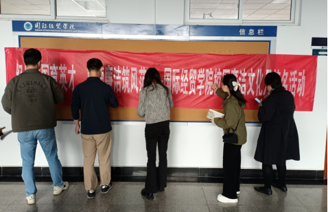 举办了“经世济国育英才,师德廉洁筑风范”为主题的校园廉洁文化月签名活动,吸引了学院广大教工的积极参与。
