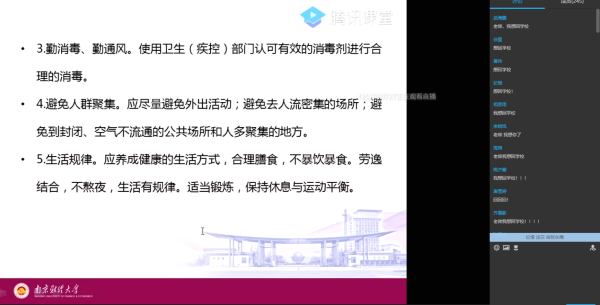 5月21日,原本能够容下百余位学生的教室空无一人,张老师对着空荡荡的教室,给毕业生上“最后一课”。她的眼神时不时看向面前讲台上的摄像头,那里面“装着”她的三百多位学生期盼的目光。“最后一课”张老师表示想说的话太多,从毕业生答辩、考研、就业等几个方面为学生详细分析,鼓励学生勇敢向前。最后张老师特别叮嘱学生在疫情期间做好个人防护,保护个人安全。