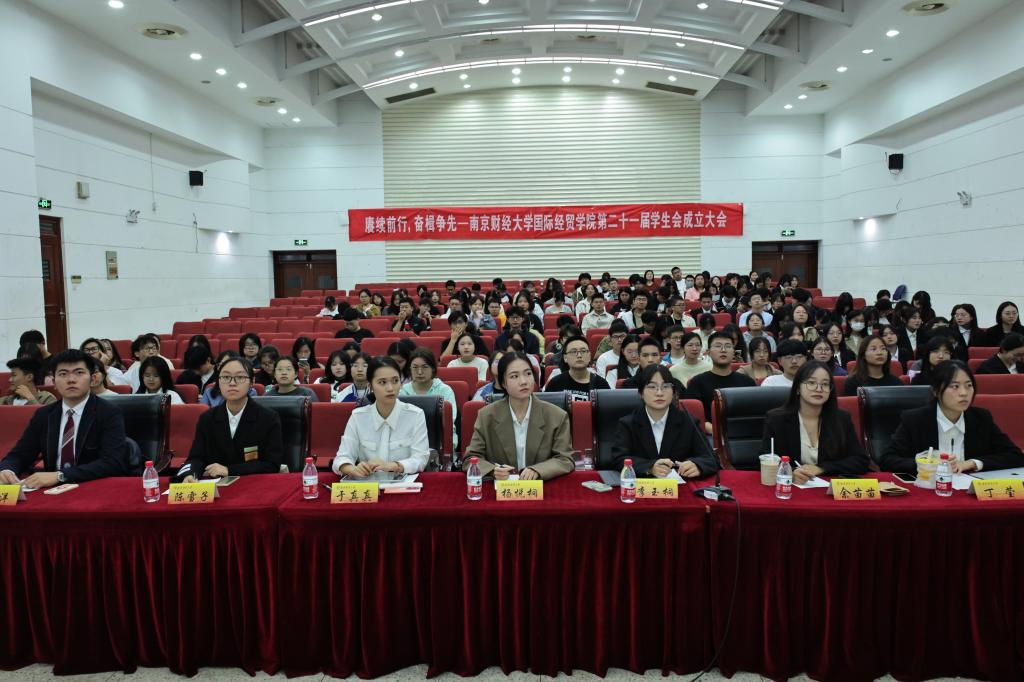 会议最后,主持人宣布国贸院第二十一届学生会正式成立。在学生会主席陈雪子的带领下学生会全体成员庄严宣誓,会议在慷慨激昂的宣誓声中圆满落幕。