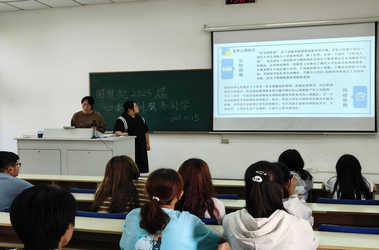 10月15日下午,由国贸院心理协会举办的心理委员培训活动在德经楼Z1-102教室顺利开展。本次活动主要目的是为了帮助各班心理委员熟悉工作、了解同学们的心理状态,方便同学们更好地开展大学生活。
