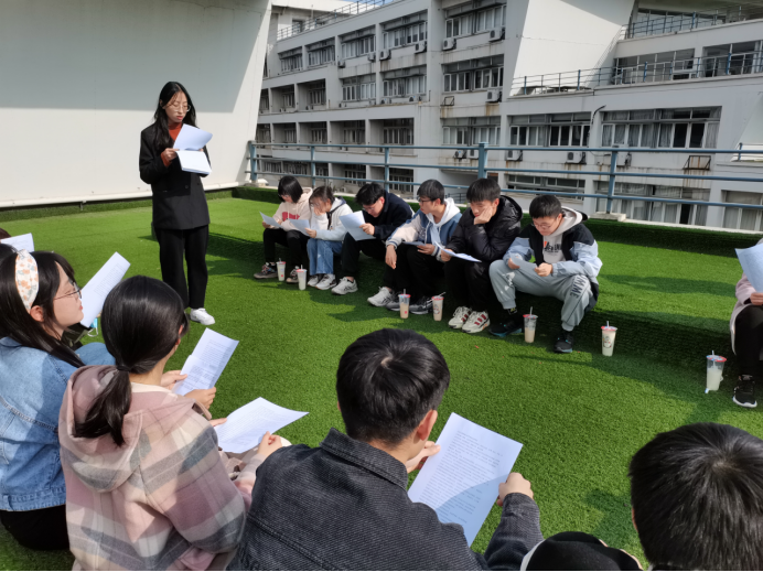 学生会联合经济学院学生会在专业楼草坪开展了“聚焦两会,共畅国昌”品读全国两会精神暨部门联谊活动。
