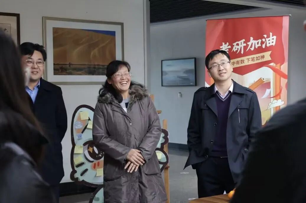 学院书记周亚芳、院长余泳泽教授和副书记周进进前来慰问考研学子。书记院长们与同学们亲切交谈,并亲手为同学们送上福袋,鼓励同学们在最后冲刺阶段稳住心态,不急不躁,从容应战。