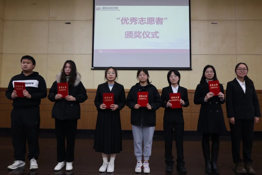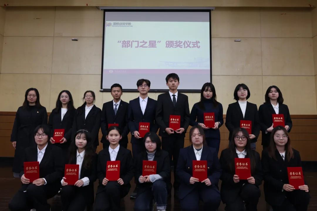 经学院党委对学院团委和学生会工作的考核评议,并参考平时工作情况、人事考核结果以及述职答辩表现情况综合对各部门负责人以及志愿者进行评分,共评选出15名“部门之星”和41名“优秀志愿者”,由团委老师邓盛佳、学生会主席陈雪子、学院团委副书记杨悦桐分别为他们颁奖并合影留念。
