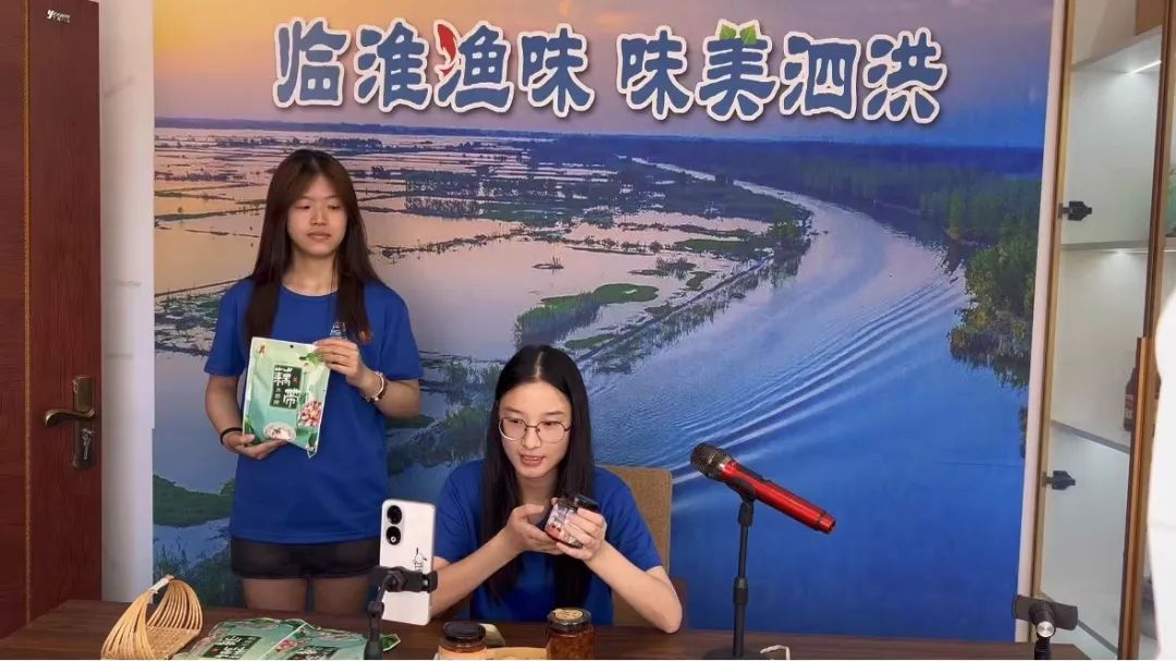 团队成员也积极尝试参与电商直播,在电商直播间中,团队成员通过娴熟的话术与满腔的热情积极宣传售卖蟹黄酱等当地特色产品,在配乐声中将产品特色娓娓道来。同时团队因地制宜促进创新临淮镇电子商务直播模式,提出以食为媒促进当地农商旅融合发展,从而推广临淮镇特色产品销售产业,提升产业知名度与销量。