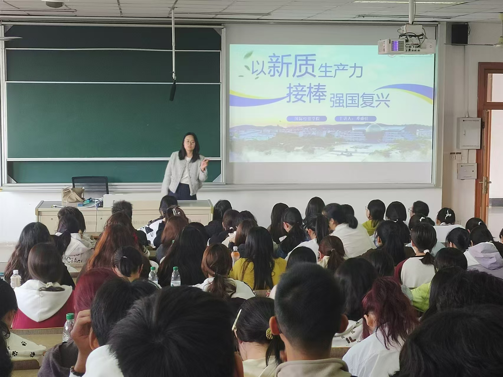 贸易经济系夏勇老师,以经济学理论中索洛增长模型引入,介绍了新质生产力与传统生产力在全要素生产效率、人力、资本、环境等方面的显著区别。他以浙江发展为例,讲解了符合新质生产力的“减加乘法”:即“五水共治”做减法,绿色环保惠民生;杭州“招商引智”做加法,人才引进重智力;杭州湾“协同创新”做乘法,组合拳打出经济发展新形态。最后,鼓励同学们学好专业课知识,借助专业知识理解真实世界运行的底层逻辑。理性看待各种经济现象,不被网络带节奏,成为一个具有独立思考能力的人。