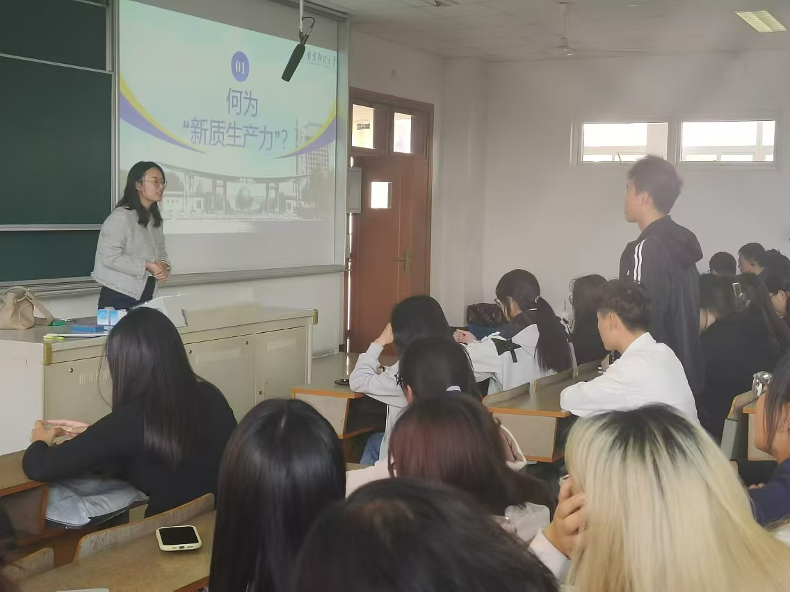潮平两岸阔,奋楫正当时。在国庆节来临之际,24级新生举办“以新质生产力 接棒强国复兴”的主题思政班会,师生一起追溯新中国成立以来生产力的发展历程,展望祖国新时代新质生产力的蓬勃发展,并以深厚的民族自豪感与责任感为祖国献上最真挚的祝福。
