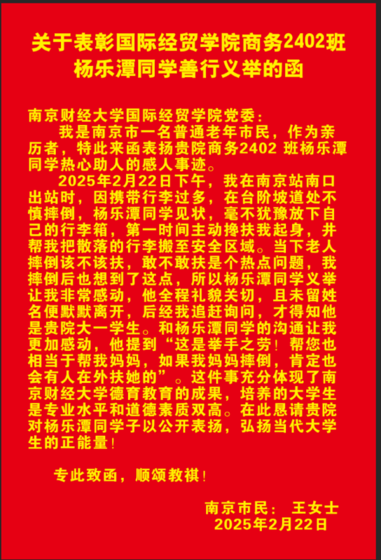 杨乐谭同学的挺身而出让我非常感动!”