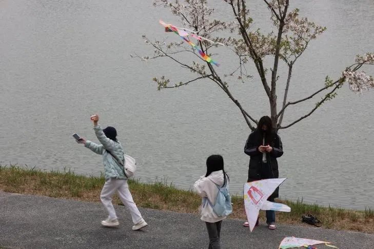 随后,在风筝制作环节中,同学们选用质地坚韧、弹性好的竹子制作骨架,根据风筝的形状和大小,然后用线将竹条绑扎成各种形状。有的以燕子、蝴蝶等传统图案为灵感,展现自然之美;另一部分则巧妙融入卡通形象、校园标志等元素,赋予风筝时代特色。制作过程中,学生们交流绘画技巧,探讨清明放鸢寄情的文化内涵,最终完成30余件风格多样的风筝作品。清明前后,万物复苏,正是踏青的好时节。细草芊芊,雾气濛濛,春水汤汤,走在田野里,走在小路上,欣赏“竹外桃花三两枝”。