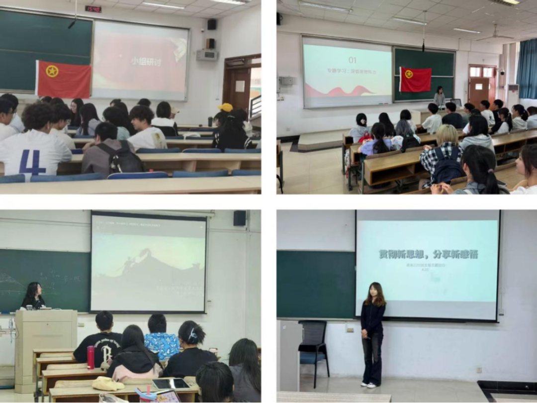各团支部以“校内主课堂”为阵地,开展“沉浸式+专业化”主题团课,将五四精神融入专业学习与成长规划。通过理论宣讲、互动研讨、实践倡议等形式,引领青年学生深刻领会五四精神的时代内涵,激励新时代青年在实现民族复兴的赛道上奋勇争先。在德经楼教室,商务2401团支部举办“青春逐梦前行,五四薪火相传”专题团课。团支书陈静以古喻今,通过“五四运动”解读五四精神当代价值。团支部30 名同学围绕专业使命与青年担当进行互动交流,提出 “数字贸易创新实验室”等 12 项提案,彰显Z世代以专业践行五四精神的决心。