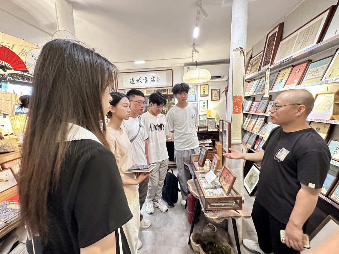 带着基层治理的鲜活感悟,实践团走进了弥漫书香的边城书店。主理人王军为访谈的队员们展开了一幅跨越时空的运河文化交流图景。他轻抚着一本从韩国购回、带有韩文批注的明代《诗经》珍本,向实践团成员介绍:“运河曾是中华文明辐射东亚的‘文化大动脉’,这些古籍就是最有力的物证。”当成员程婧尧好奇询问古籍保护如何“活”在当下时,王军展示了正在修复的古籍残页与据此开发的精美文创产品“老祖宗的技艺不能只躺在库房里,注入时代活力,让年轻人喜爱,才是真正的传承。”队员们亲手触摸这些承载着历史对话的泛黄纸张,对运河促进的文明交融有了更切身的体悟。书店内修复师专注的身影与古籍散发的独特气息,让队员们感受到守护文化根脉的匠心。