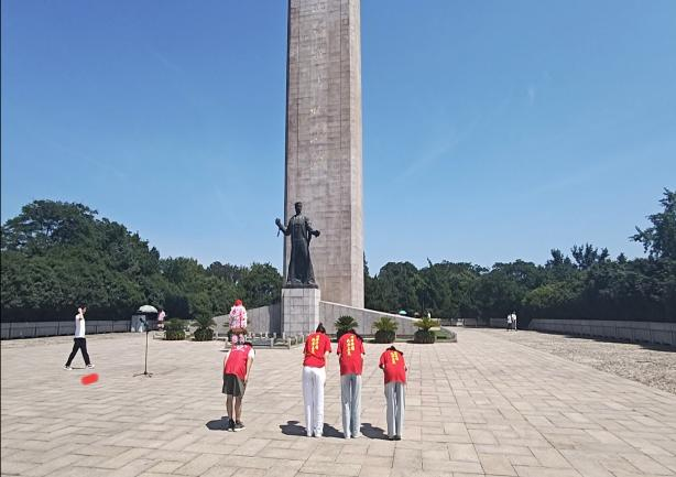 图为实践团成员们在雨花台烈士纪念碑前鞠躬缅怀英烈 唐顺岩供图