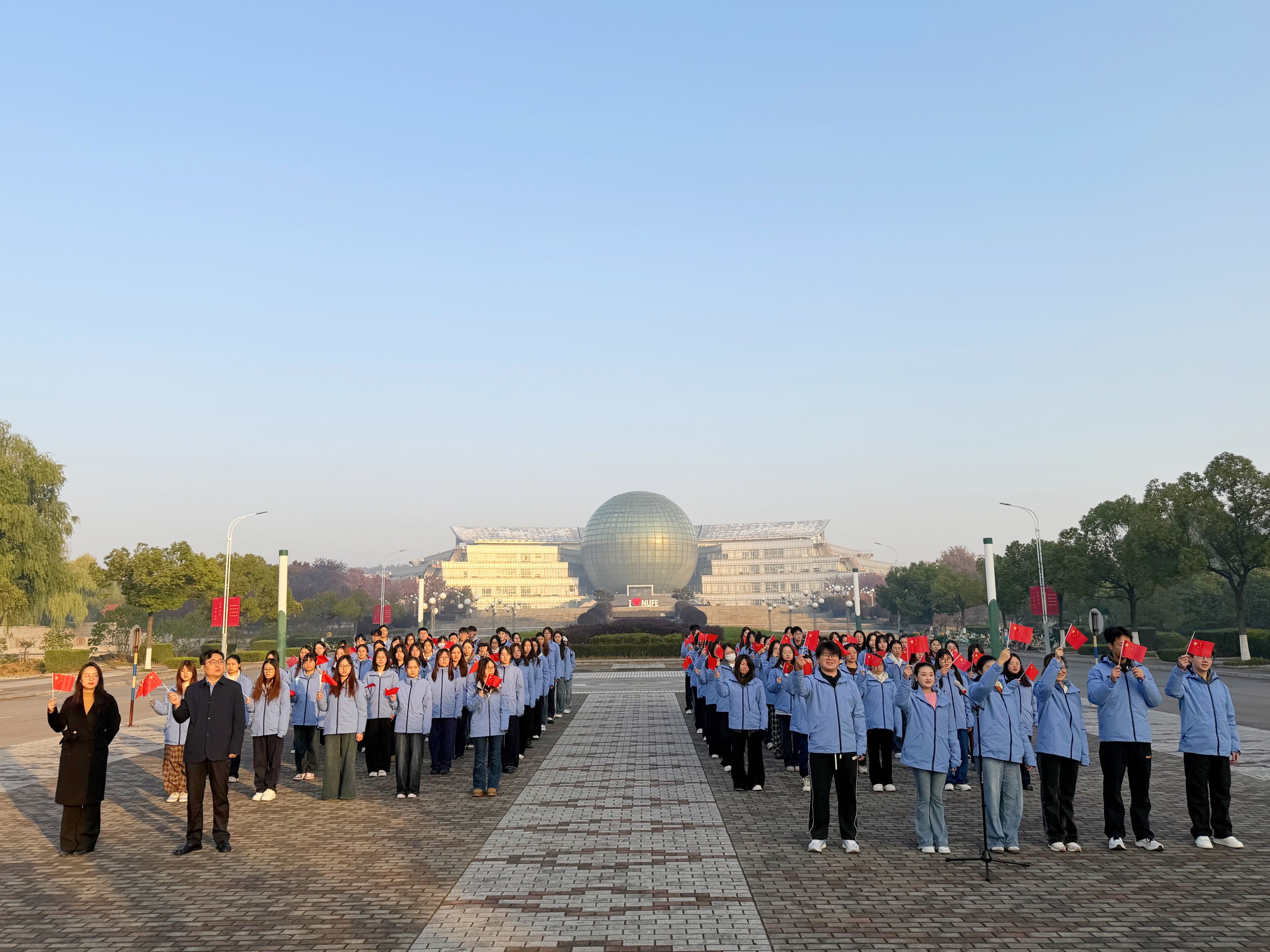 学院党委副书记周进进老师、团委书记邓盛佳老师、第二十期青马班全体学员以及2025年入团积极分子100余人,以昂扬的姿态迎接升国旗的庄严时刻让爱国的热忱在校园中澎湃激荡。