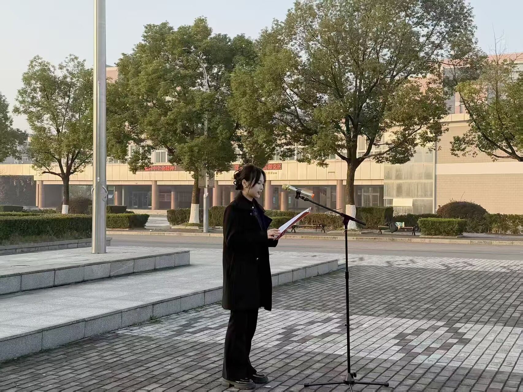 升旗礼毕,国实 2401 班侯丞同学做国旗下演讲。青春恰自来,奋斗正芳华,她以“苔花如米小,也学牡丹开” 点明青春需奋斗的主旨,讲述国贸师生的奋斗故事与时代担当:从跨越1000余天的数贸企业创新网络调研到接续八年的跨越千里的传球支教,从让非遗传承在新时代焕发生机到AI赋能教育教学走向国际舞台,生动诠释了国贸人 “经世济国,风华正茂”的价值追求,让青年们深刻感受到榜样就在身边,坚定了以奋斗之姿书写青春答卷的信念。