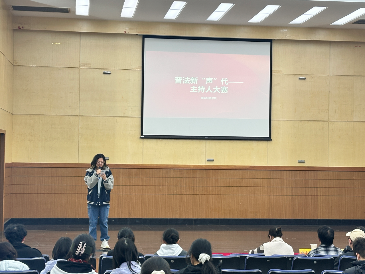 于12月1日在德济楼二楼报告厅举办普法新“声”代主持人大赛,通过主持竞技与法治内容相结合的形式,引导学生在表达中学习法律、在互动中理解法治,用青春之声传递法治力量,让法治精神在校园落地生根。