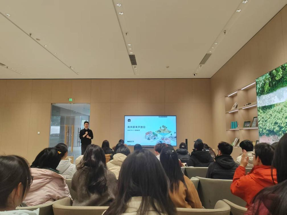 二十余名学生走进蔚来汽车体验中心,开展了一场兼具启发性与互动性的行业参访。在技术讲解、实地观摩与交流座谈中,同学们沉浸式触摸新能源汽车行业的发展脉搏,切身感受智能科技与绿色出行的融合实践。