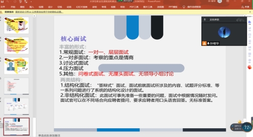 会议中,孙老师通过与学生连麦,让学生代表分享他们在就业中遇到的问题。其中有的毕业生同学就反映:中小企业岗位缩减,待遇较低、基层就业录取率偏低等实际问题。孙老师就相关问题对症下药,由小见大,给同学们提供了指导性意见与建议。