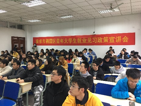 在仙林校区德经楼Z-112教室成功举办南京市栖霞区青年大学生就业见习政策宣讲会,邀请了南京市栖霞区人社局职培科宣讲员董蕾娜等5位宣讲员、色情网
