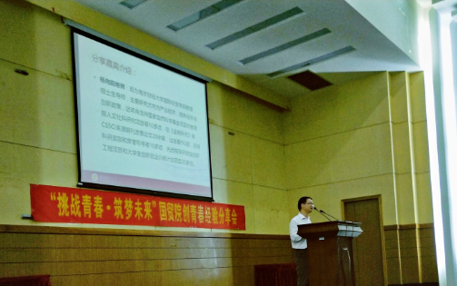 活动开始,主持人张雪晴向参会同学普及了“创青春”全国大学生创业大赛的相关信息,并对与会嘉宾们做了简单介绍,接着就开始了经验分享。