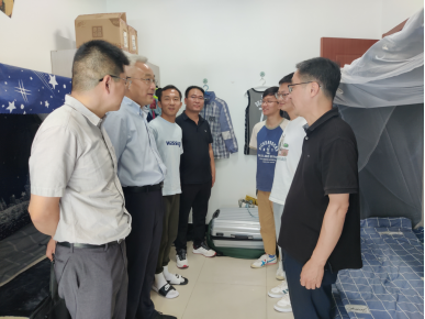 步入宿舍,整洁的生活环境、温馨的学习氛围深深地感染了老师们,张校长亲切地询问同学们学习的专业和生源地,了解他们的学业情况和就业方向,并认真听取并详细记录下他们提出的困难、需求和建议。张校长细心叮嘱同学们要切实增强安全防范意识,在宿舍要自觉遵守用电安全等规章制度,暑期返乡切勿到野外游泳,全力保障个人生命安全。在与同学们的交谈中,陆处长鼓励同学们要加强体育锻炼,认真做好研究生学业规划,利用所学积极投身社会实践,帮忙解决现实问题,磨炼意志,增长才干。活动后,针对走访中发现和学生关注的问题,相关部门将会对问题立查立改、即知即改,为学生成长成才提供坚实的保障。同学们纷纷表示会谨记老师们的谆谆教诲,用实干和担当肩负起时代赋予的重任,奋发向上、拼搏前进,为中华民族伟大复兴不懈奋斗