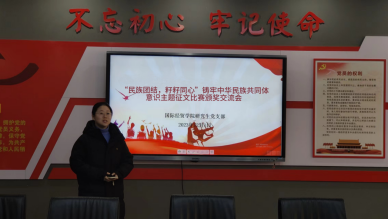 研究生党支部副书记张东霞老师为此次活动的获奖同学颁奖,她希望广大同学要齐心协力把校园建设成各民族学生的精神家园,让中华民族共同体意识在潜移默化中生根发芽,进一步坚定为党和国家贡献青春力量的信心和决心。