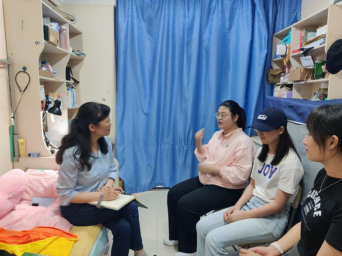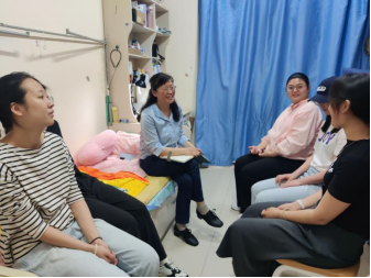 党委书记、研究生第一党支部政治辅导员周亚芳书记与研究生辅导员张东霞老师一同前往16号宿舍站,与2栋106宿舍的研究生们进行了面对面的交流。