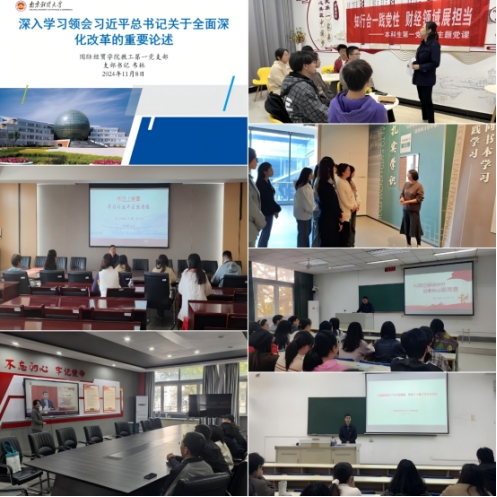 10月23日下午,产发院教工党支部书记徐圆讲授《新时代新征程》主题党课,从“七个聚焦”出发,全面系统地介绍了中国共产党第二十届中央委员会第三次全体会议报告内容。10月24日,本科生第二党支部书记张朋朋老师及支部全体党员在陶行知教育纪念馆开展党课教育。本科生第三党支部组织党员集体参观行知园基地,开展了一场“行走的党课”。11月6日下午,黄大年教工支部开展习近平法治思想学习大讨论,余泳泽书记带领全体支部党员学习习近平法治思想,支部党员表示,将深刻理解这一思想的核心内容,在日常的教学科研中严守底线、红线,坚持做好本职工作,并在实际工作中贯彻落实。11月6日,本科生第一党支部在“一站式”学生社区红石榴家园开展了题为“知行合一践党性,财经领域展担当”党课学习,董敏老师深入浅出地阐述了如何将党性践行与财经领域的担当相融合。11月6日,研究生第二党支部于德经楼106教室开展“把握新质生产力内涵精髓,贯彻党的二十届三中全会精神”专题党课。支部书记李贲老师从新质生产力的内涵、培育方向以及江苏省发展新质生产力的优势三个方面进行了详细阐述。11月8日,教工第一党支部以“深入学习领会习近平总书记关于全面深化改革的重要论述”为题,支部书记韦林老师与支部党员探讨如何完整准确全面贯彻新发展理念,更加注重系统集成,突出重点,注重改革实效,赢得战略主动。11月13日,研究生第一党支部全体党员在专一205开展“科研创新燃梦想,挺膺担当砺青春”支部书记专题党课,深入学习贯彻党的二十大报告中关于科研创新的重要论述。