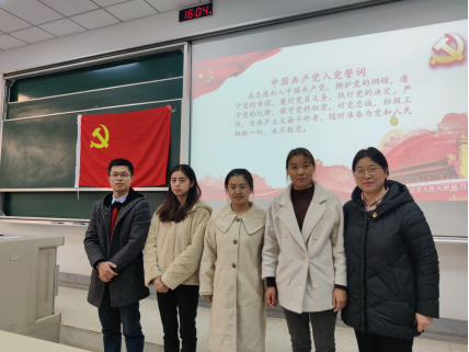 会议严格按照发展党员工作程序进行。会上,佟欣、申晨荣、王安妮3名发展对象分别宣读了入党志愿书,汇报了自己对党的认识以及入党动机,真情表达了对党的向往和对党的忠诚。她们的入党介绍人分别介绍了相关情况,并对其从思想觉悟、学习能力、工作态度等方面表达了肯定意见,并指出了不足之处。张东霞老师宣读了支委会的预审意见。最后,与会正式党员进行无记名投票表决,一致同意接收佟欣、申晨荣、王安妮3名同志为中共预备党员。佟欣、申晨荣、王安妮3名同志面对党旗庄严宣誓。