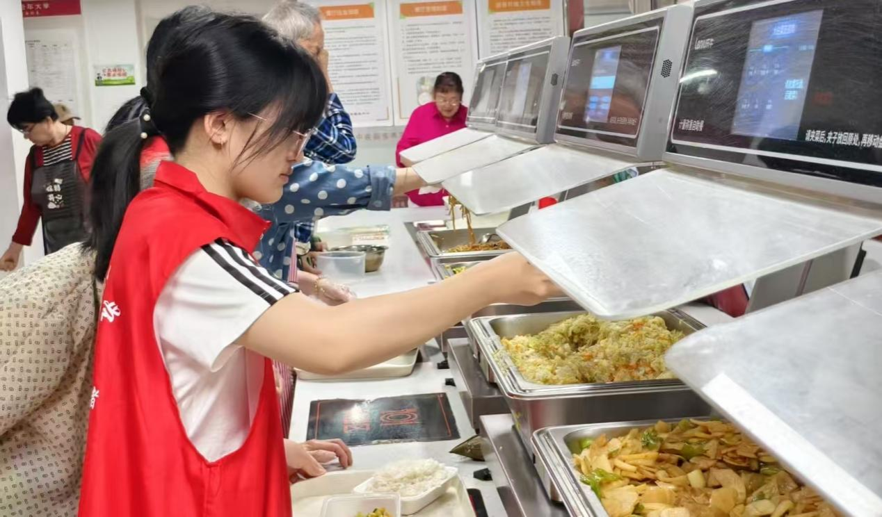 临近饭点,香喷喷的饭菜香充盈着小小的社区食堂。考虑到大多数老人面临的健康问题和多元化的就餐需求,悦心居家养老服务中心严格遵循健康管理原则,推出各色少油、少盐、少糖、少辣的菜品,同时搭配“随心点”的服务,在满足老人不同口味需求的同时兼顾健康标准。几枚硬币,一顿饱餐,洋溢在老人脸上的是对新生活的满足和对新时代的信心。