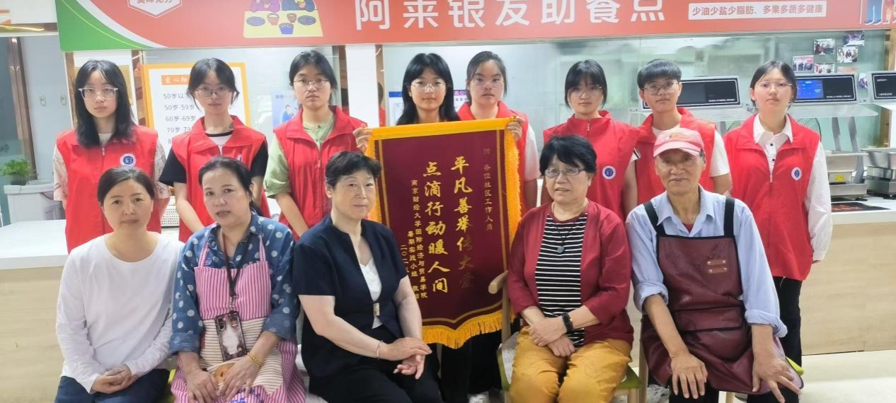 活动的最后,“一饭一心志愿队”把事先准备好的锦旗赠送给在服务中心辛勤付出的服务志愿者们。在将锦旗递给老一辈志愿者的同时,年轻的志愿者接过了新时代的爱心接力棒,爱心温情的传播尽在一来一往一饭一心之间。