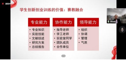 邀请嘉兴学院李加友教授为在校生在线开展了“互联网+”大学生创新创业竞赛的成功之道“主题讲座。讲座由教学院长徐圆主持。