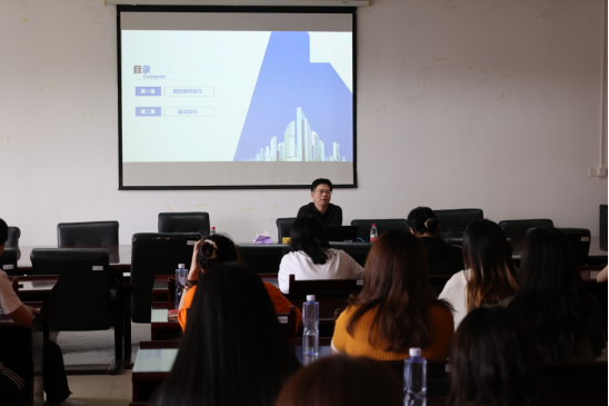 本科生就业竞争力,5月25日下午,江苏汇鸿国际集团股份有限公司招聘培训经理吴亦嘉(中级经济师、中级工程师)在德经楼308会议室为2018级本科生做了题为《毕业生简历制作及面试技巧》的讲座。活动由杨智华副院长主持,60余名本科生参加讲座。
