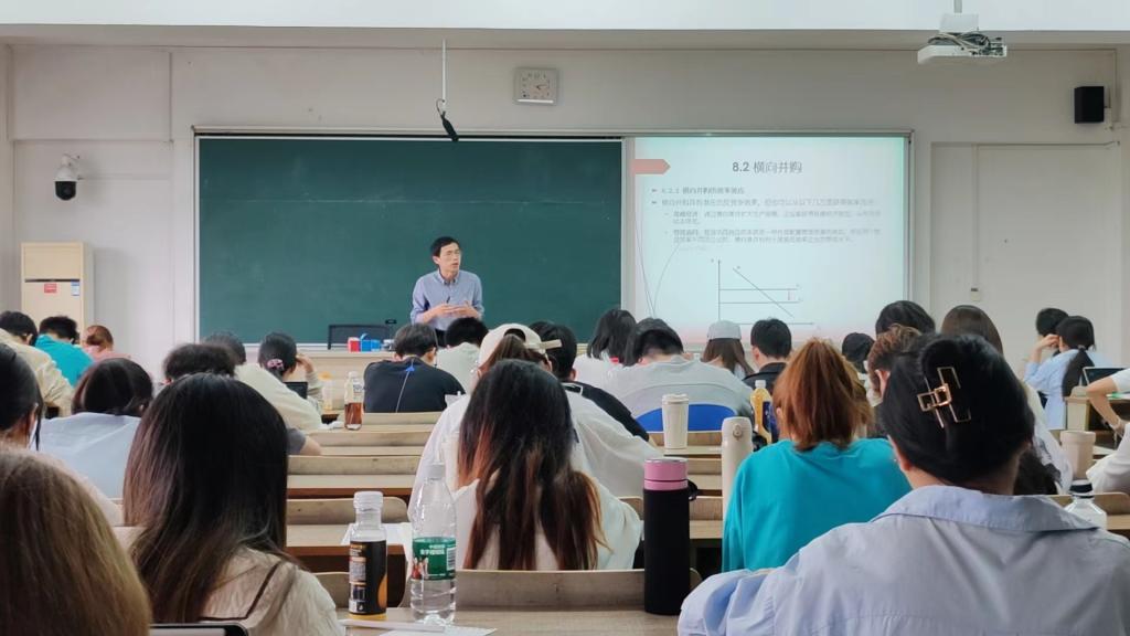 本次观摩课程内容为“企业并购”。首先,授课教师对企业并购行为的产业经济学分析视角及反垄断政策实践需求进行介绍,引导学生带着问题学习本次课程内容。然后,授课教师根据不同企业并购类型,结合实际案例介绍并与学生讨论并购行为对市场竞争的影响,启发学生依据课程已经讲授的理论知识分析问题。最后,与会教师就此次教学内容、方式和效果进行了经验交流。校教学督导及各位老师都指出如何进一步提高学生课堂学习积极性是当下教学活动需要着重关注和解决的问题,同时认为在教学内容中融入更多的实际案例激发学生兴趣,加强课堂互动讨论是调动学生的积极性的有效方法。