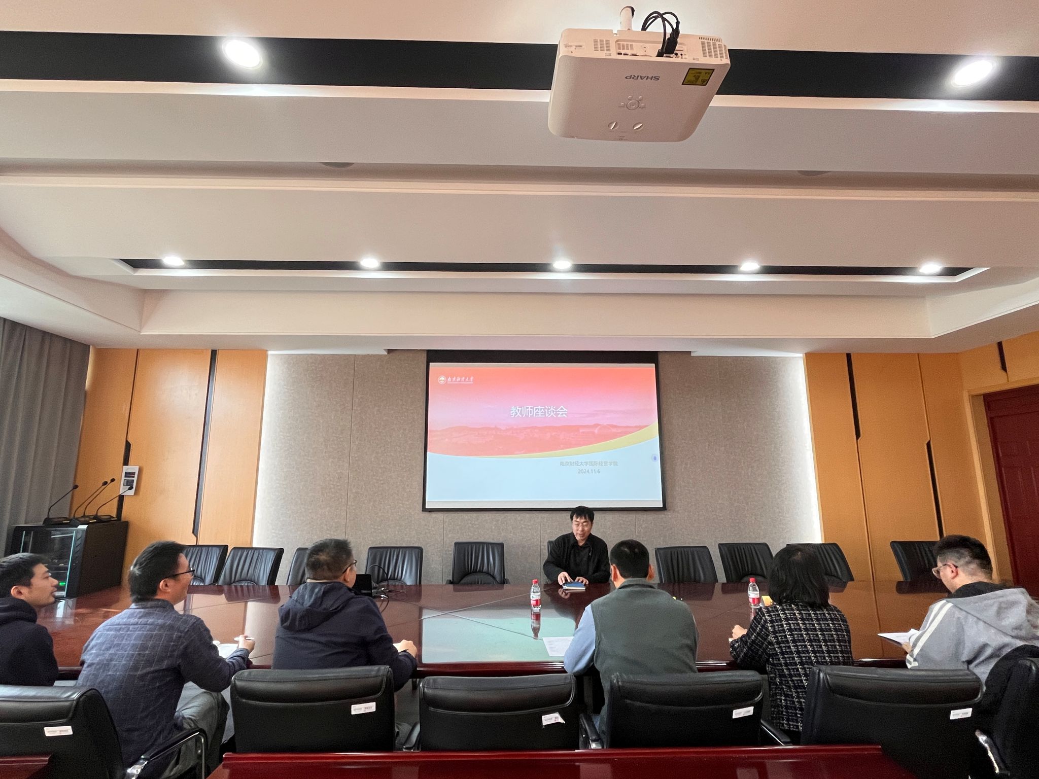 于10月9号在德经楼308开展期中教师座谈会,来自国际经济与贸易系、贸易经济系、电子商务系的系主任、教师代表参加会议,会议由副院长李冠艺主持。