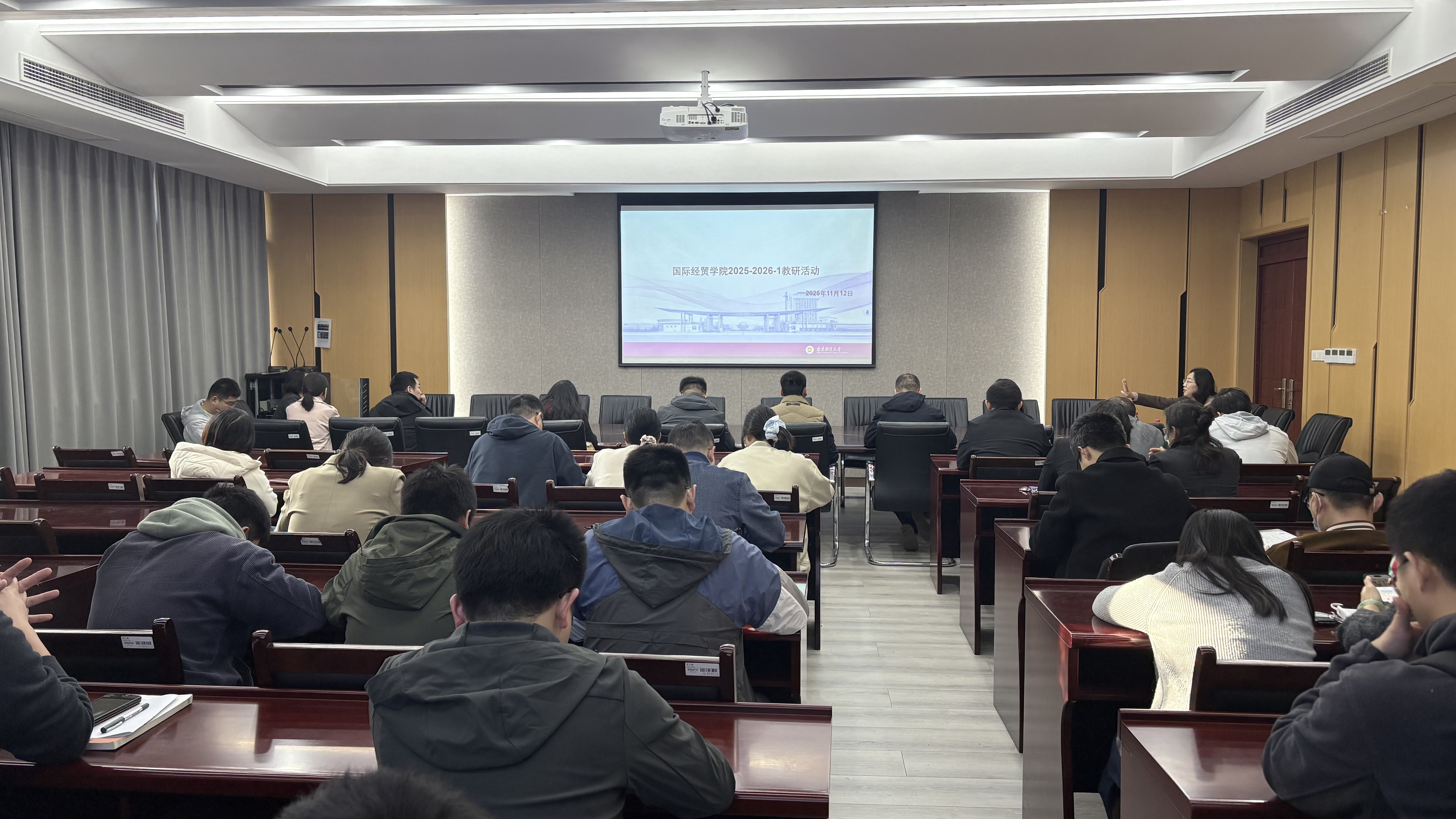 于11月12日召开了2025-2026学年第一学期教研活动,国际经济与贸易系、贸易经济系和电子商务系的系主任、教师代表参加本次活动。校督导刘琴老师受邀参会。本次活动聚焦“如何提升学生学习内驱力”、“数字化转型背景下实验班升级”以及“课程体系优化”等核心议题,展开了热烈而富有建设性的研讨。