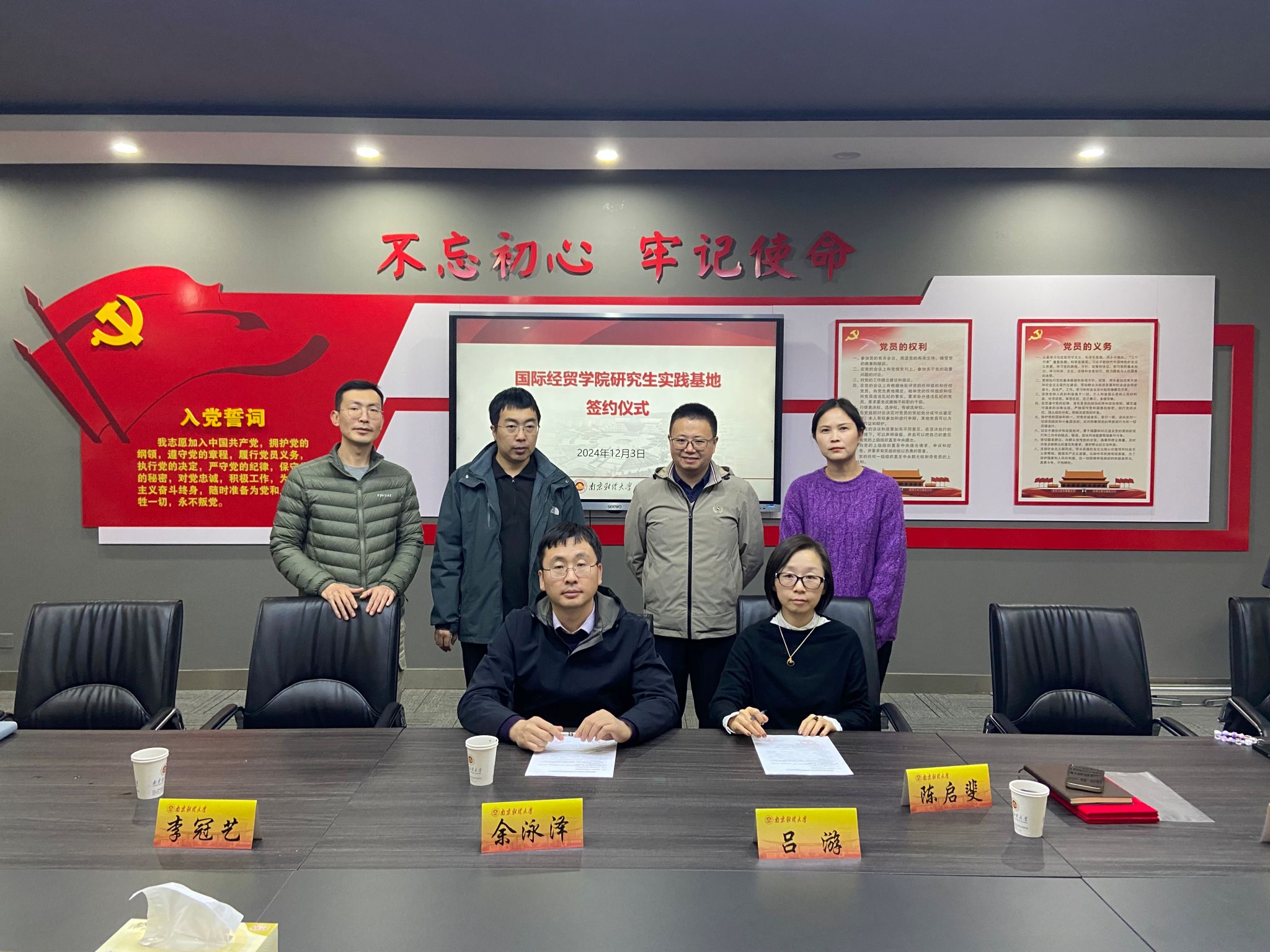 最后,双方领导共同签署了研究生实践基地的合作协议,并由余永泽院长和陈启斐副院长为培训事业部负责人杨庆耀和钱慧颁发了国际商务专业行业导师聘书。